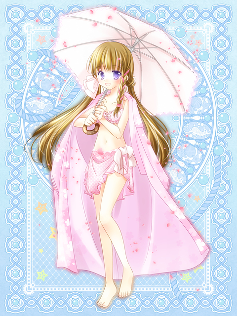 絵師様、本当に御免なさい……。でも、こんなに可愛い水着を着せてくださいましたっ。ふわふわふんわりで、鈴っぽくて嬉しいですっ。しかし、鈴さん年々露出度上がっているようn←